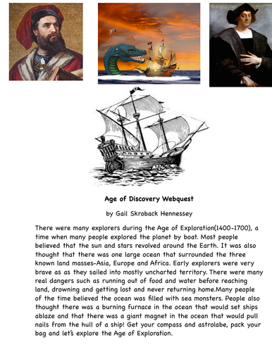 Age of Exploration Facts and Worksheets for Kids General activities to study the age of exploration: There will be both advantages and disadvantages to the age of exploration. The exploration period impacted our entire world in both good ways and bad. Of course, the exploration brought with it opportunity, better trade routes, better economy, and new resources.