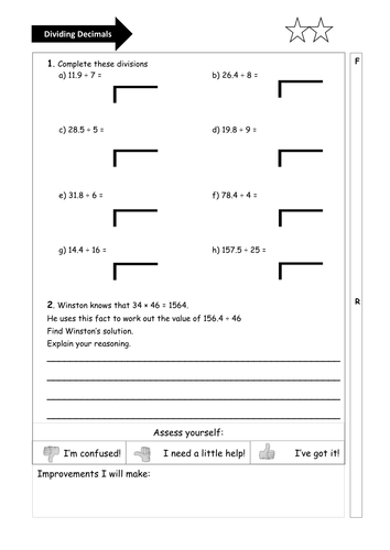 Dividing Decimals interactive worksheet ID: 503047 Language: English School subject: Math Grade/level: 5-6 Age: 9-11 Main content: Division Other contents: Add to my workbooks (100) Download file pdf Embed in my website or blog Add to Google Classroom