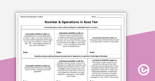 4th Grade Number | NUMBER AND OPERATIONS IN BASE TEN This page provides sample 4th Grade Number tasks and games from our 4th Grade Math Centers eBook. Download our 4th Grade Correlations document for cross-referenced tables outlining the alignment of each state's standards with the CCSS-M, as well as the page numbers in our 4th Grade... Numbers and Operations in Base Ten (10 x a Number) 4th Grade... 4.NBT .A.1 Recognize when digits are the same, right next to each other, that a digit is 10 times as much as a digit to its right Video Helpful? PDF Numbers & operations in base ten Common Core State Standards Mathematics Grade 4. As a game-based learning platform, Minecraft offers educators a transformative way to engage students Solve multistep word problems posed with whole numbers and having whole-number answers using the four operations, including problems in...