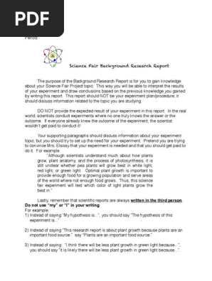 how to write a background research paper for science fair 35 Introduction to Science Fair Background Research Paper. Background research is also important to help you understand the theory behind your experiment. In other words, science fair judges like to see that you understand why your experiment turns out the way it does. 10 Winning Science Fair Projects ideas | winning science fair projects... Science Fair Background Research Process: 1. You will need 60 index cards 2. You will make a list of 20 questions about your topic and then find answers Often the most difficult parts of the Science Fair Program is choosing an appropriate topic to research. The ideas for projects are endless; you...