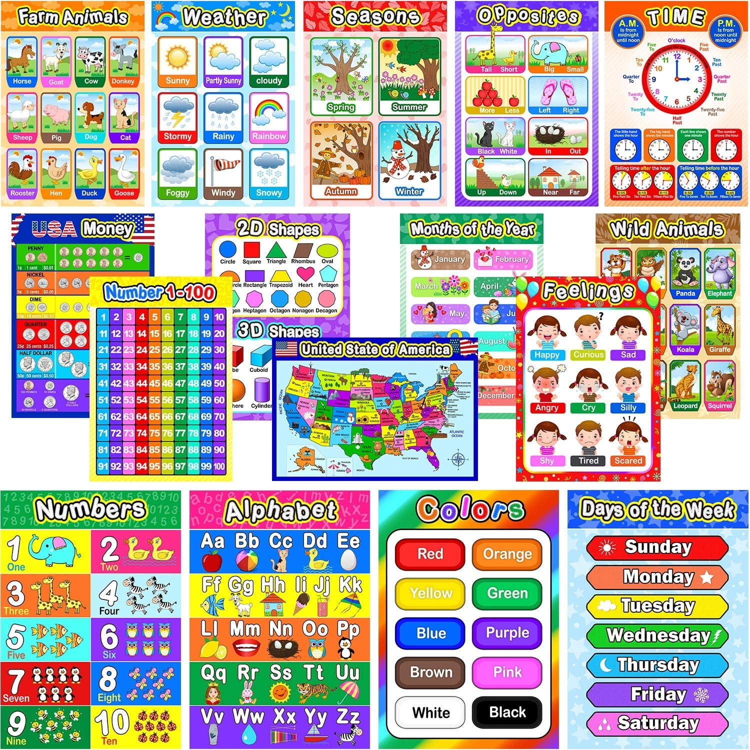 Amazon.com : 20 Educational Preschool Posters for Kids ... 20 different educational posters are a great learning resource for kids. Contains ALPHABET Numbers Colors Insects Farm Sea Wild Animals Seasons Weather Ball Games Opposites Body Fruits Vegetables Shapes. Nice gift for toddler This gorgeous color preschool education poster is great for both pre-k, preschool, home