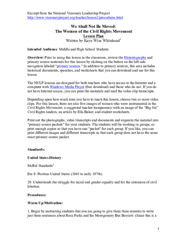 Civil Rights Movement - FREE American History Lesson Plans ... & Activities Civil Rights Movement in the US. For Teachers. Segregation (with 3 student handouts - 1935, 1945, 1955, Donn) Riding the Bus, Taking a Stand (1 week unit) Competing Voices of the Civil Rights Movement. Events Leading up to the American Civil War, the Civil War, and Reconstruction Lesson Plans for Teachers. Jim Crow laws ...