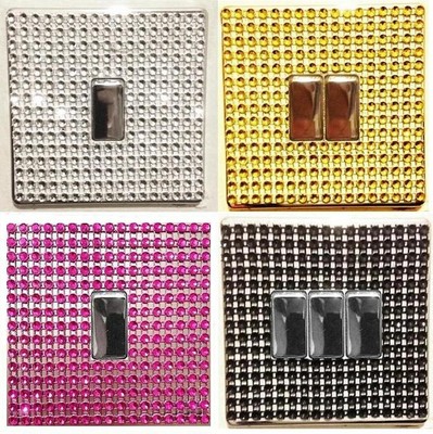 Glitter light switch cover. Bling!! More Colours No glue ... light switch cover Beautiful handmade light switch cover will fit any standard uk cover single or double.These will finish off any room in the house, Available in different colours hand decorated with chunky glitter and rhinestone edgeing. Please note these are self adhesive not vinyl. This is only for the front and will not wrap round the sides.