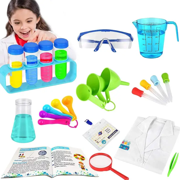 SNAEN Kids Science Kit 46 Lab Chemicals Experiments Toys Gifts for 3 4 5 6 7 8 9 10 Years Old Boys Girls with Lab Coat Scientist Costume Role Play ...