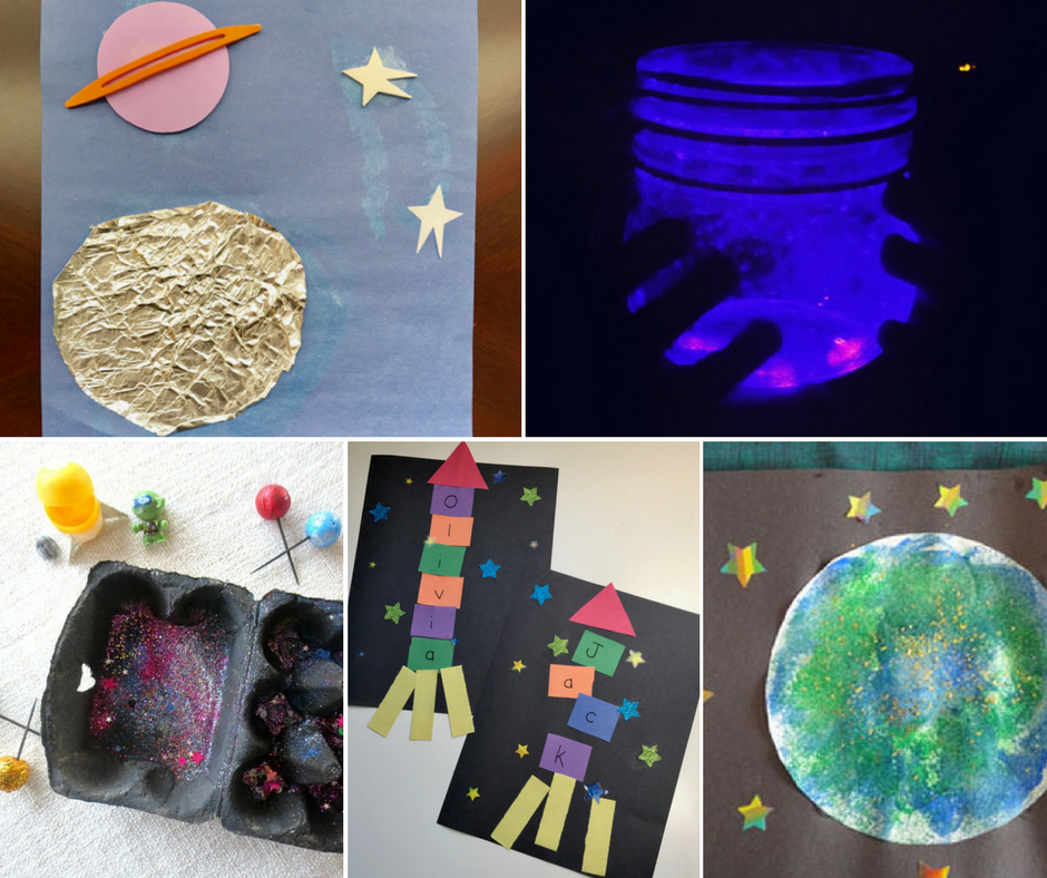21 Out Of This World Space Crafts For Kids Any kid who loves learning about space will have a blast making these projects. From simple crafts like marbled planets and pom-pom painted moons for preschoolers, to more advanced crafts like rocket ship origami bookmarks and flying rockets for older kids, you're going to find the perfect activity for any age.