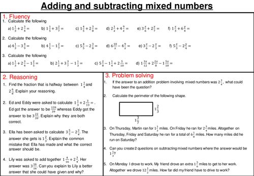 Adding and Subtracting Mixed Numbers Worksheets - Cuemath Adding and subtracting mixed numbers worksheets help kids to understand the concept of performing basic arithmetic operations of addition and subtraction on mixed numbers. Benefits of Adding and Subtracting Mixed Numbers Worksheets Adding and subtracting mixed numbers worksheets provide several fun visuals and graphics associated with all problems.