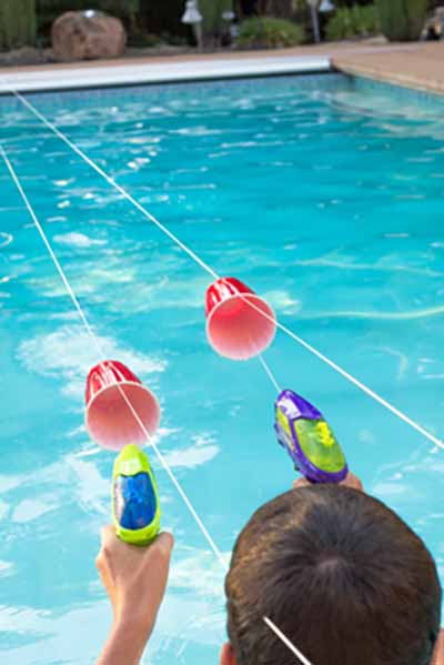 24 Fun Swimming Pool Games | Pool Party Place the rope across a section of the pool. Give each player a beach ball. When you say "Go," players use their beach balls to bump each other into the rope. Any player who touches the rope is "out." The last player in the pool wins! 5. Cardboard Boat Race What you'll need: Cardboard boxes Scissors Packing tape Colored paper Markers and stickers