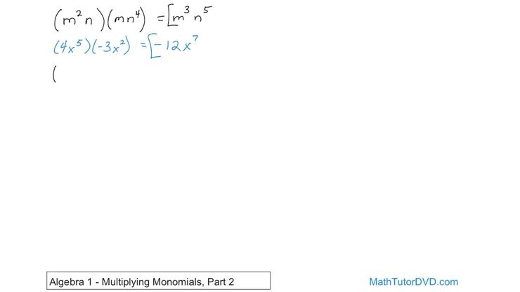 Multiplying Monomials (examples, solutions, worksheets, videos, games ... Multiplying Monomials When multiplying monomials: multiply the coefficients, and add the exponents for like factors only. Multiplying Monomials Show Step-by-step Solutions Multiplying Monomials Try the free Mathway calculator and problem solver below to practice various math topics. Multiplying monomials | Algebra I | Khan Academy - YouTube Learn how to multiply monomials like 5x² * 4x⁶ or 4p³ * p. Practice this lesson yourself on KhanAcademy.org right now: ...