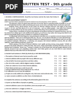 9th grade reading comprehension test