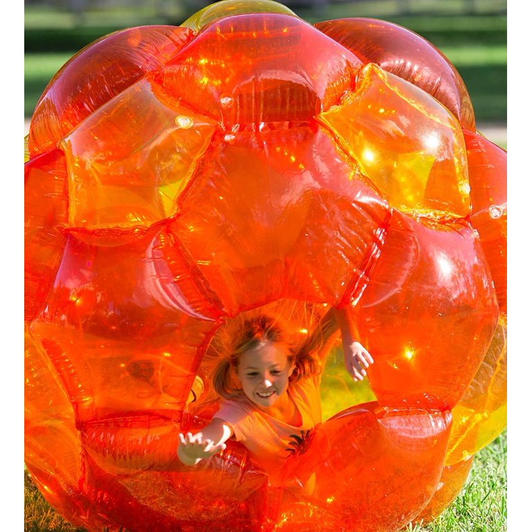 HearthSong® Orange and Yellow Incred-a-Ball GBOP Great Big Outdoor Play Inflatable Blow Up Bubble Soccer Zorb Ball Heavy Duty Durable PVC Vinyl 65''