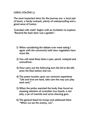 High school punctuation worksheets