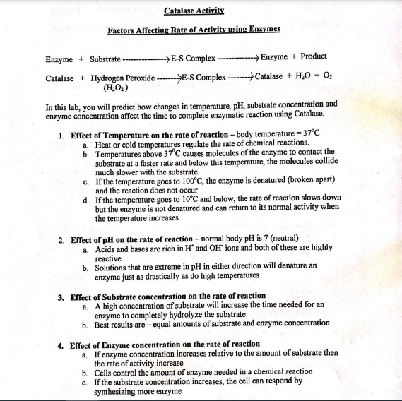 Effect of Temperature on Catalase Activity Lab Report Hydrogen peroxide is the byproduct of numerous biological processes, and to break down this molecule, the body uses an enzyme called catalase. Higher temperatures tend to speed up the effect of enzyme activity, while lower temperatures decrease the rate of an enzyme reaction. ... but the heights will increase as temperature increases 75 ... Alcohol Metabolism - National Institute on Alcohol Abuse and Alcoholism First, ADH metabolizes alcohol to acetaldehyde, a highly toxic substance and known carcinogen. 1 Then, acetaldehyde is further metabolized down to another, less active byproduct called acetate, 1 which then is broken down into water and carbon dioxide for easy elimination. 2 Other enzymes